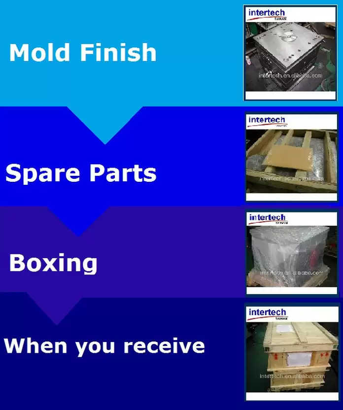 Normalmente, una fábrica de fabricante de moldes enfoque general solamente en moldes de inyección de plástico, pero Intertech también se involucra profundamente en el molde de compresión de silicona y ponche de metal fundido. Por lo tanto, no importa que ustedtienen piezas de plástico, piezas de goma de silicona o proyecto de las piezas de metal, todos podemos gestionar por su trabajo y la producción de herramientas para usted aquí en Taiwán nuestra fábrica.